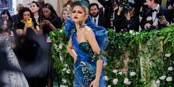 В Метрополитен-музее звездная тусовка отметила свой главный майский праздник — благотворительный бал Met Gala 2024. Мероприятие проходит в первый понедельник мая, предваряя открытие ежегодной выставки Института костюма при Метрополитен-музее. В этом году выставка под названием «Спящие красавицы: просыпающаяся мода» расскажет о последних четырех веках в истории моды. Пожертвования, собранные на Met Gala, составляют важную часть бюджета Института костюма. Но наибольший интерес СМИ и широкой публики вызывают вовсе не старинные костюмы, а обновки звезд, приглашенных на Met Gala («стоимостью в мою квартиру», согласно одному из миллионов комментариев в соцсетях). Как и перед церемонией вручения «Оскаров», звезды проходят сквозь строй фотографов и зрителей со смартфонами, поднимаясь по ковровой дорожке (в этом году бело-бирюзовой) на ступеньках Метрополитен-музея. Дресс-код для приглашенных на бал знаменитостей звучал так — «Сад времени» (в честь одноименного рассказа Дж. Г. Балларда). О том, кто и как раскрыл заданную тему, и о чем собственно контент Балларда, — в материале, фотогалерее и пересказе ADPASS.