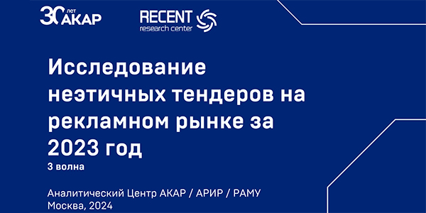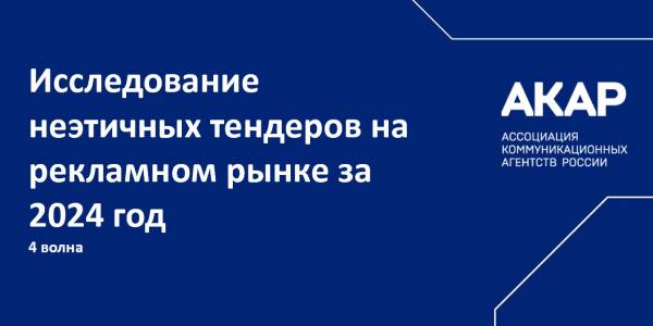 Тендеры на рекламном рынке становятся честнее, тем не менее каждый пятый конкурс в 2022 году являлся договорным или проводился недобросовестно, следует из исследования Ассоциации коммуникационных агентств России (АКАР). Половина опрошенных часто или постоянно сталкивается с неэтичными тендерами, большая которых проводится в сфере медийной рекламы. 62% пострадавших от неэтичных торгов не смогли компенсировать свои временные, финансовые и репутационные потери. Для борьбы с нечестным поведением ряда игроков рынка АКАР сформирует «тревожный список» недобросовестных контрагентов.