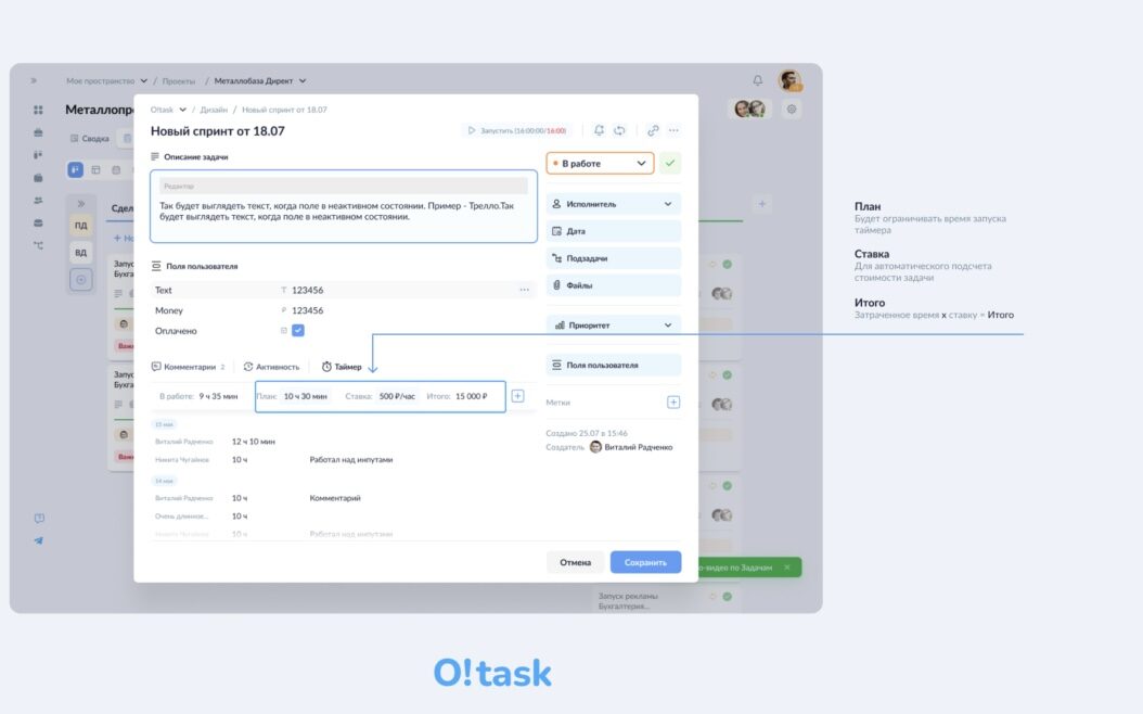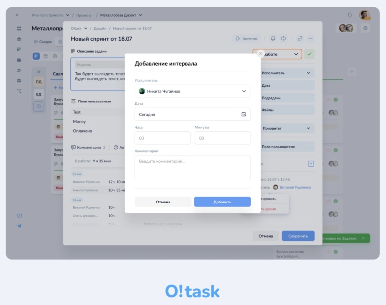 Если ваша команда работает по T&M или же вы просто хотите фиксировать затраченное время на те или иные задачи — Welcome к нам в O!task, уверен вам понравится.