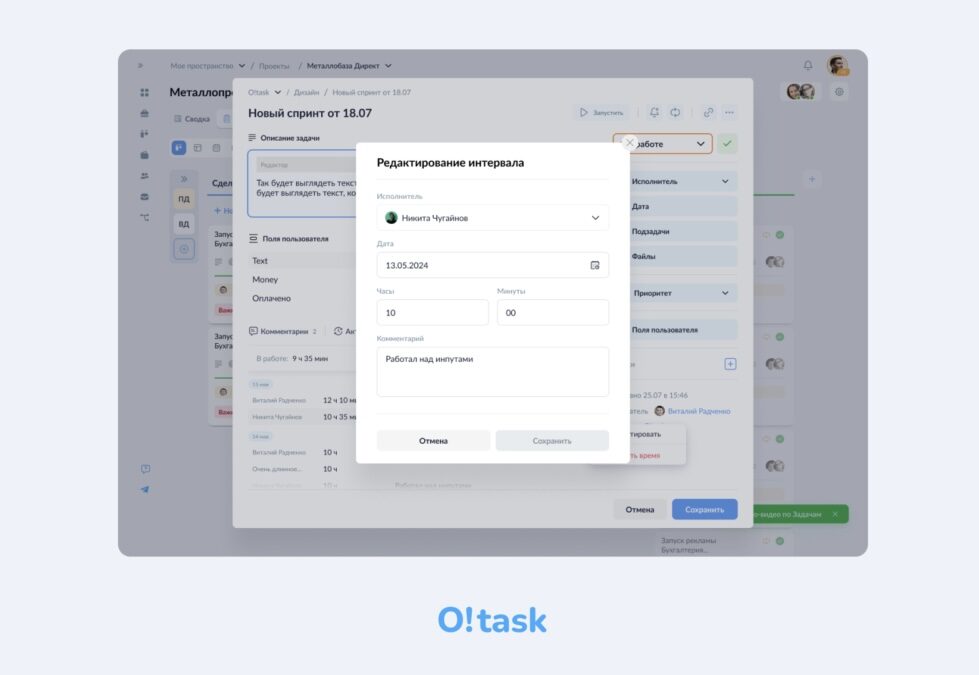 Тайм-трекинг задач 2.0 в O!task | Сделали как просили пользователи и немного приукрасили