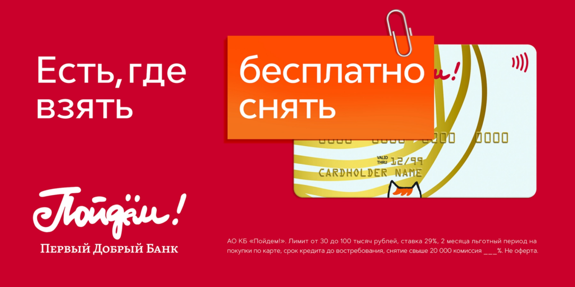В «Пойдём!», в отличие от других современных банков, оценкой заемщика занимается не автоматическая система скоринга, а сидящие в офисах консультанты. Как в старые добрые времена: приходишь, рассказываешь свою историю и получаешь деньги — под адекватный процент, не как в МФО.