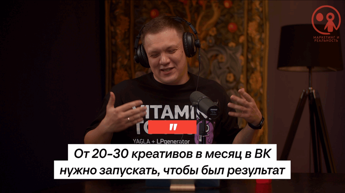 Чтобы был результат, нужно запускать от 20-30 креативов в месяц. Алгоритмы разгоняются на больших объемах и находят теплую аудиторию, с которой можно работать.