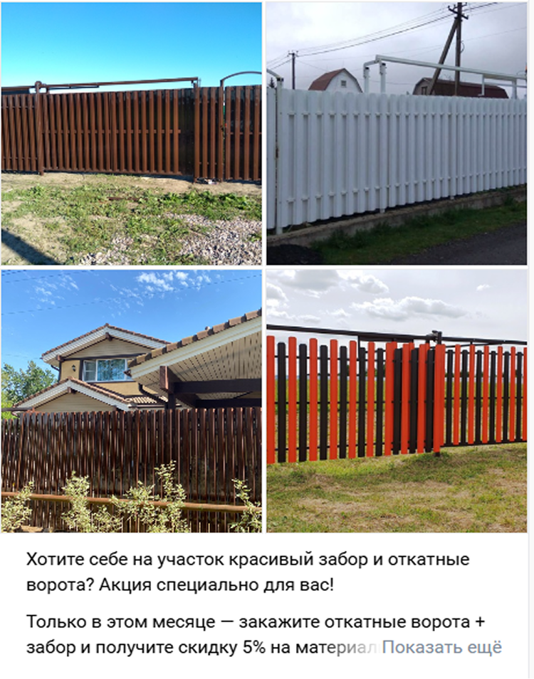 Таргет VK: продвижение услуг по установке заборов для загородных домов
