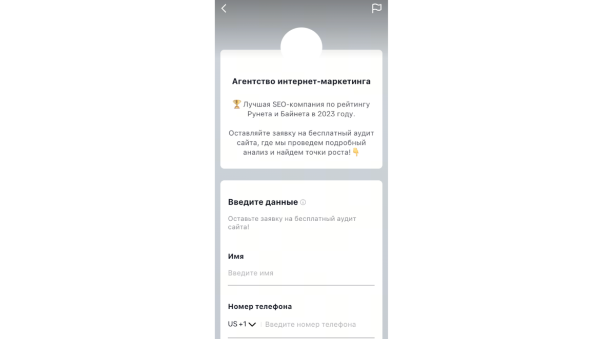 Необходимо отметить, что при использовании лид-формы важно акцентировать внимание на привлекательном предложении и четком УТП компании уже в самом рекламном объявлении, так как объем текста в лид-форме ограничен.