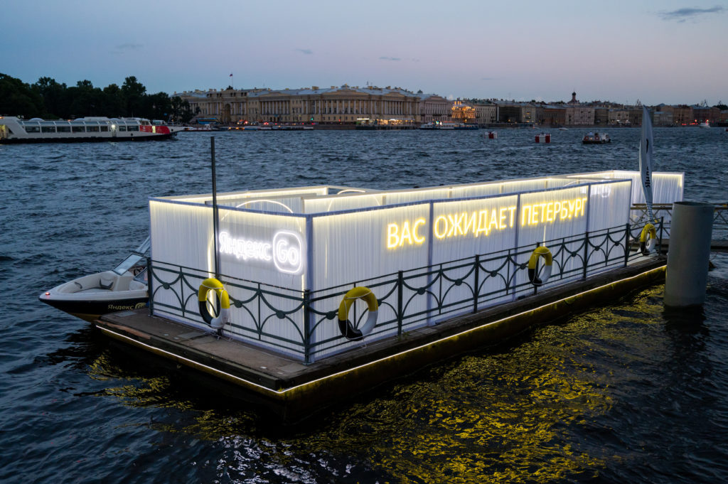 Еще связь северной столицы с брендом подчеркнута в названии спектакля. Фраза «Вас ожидает» — отсылка на информационное сообщение в приложении Яндекса. Это уведомление видят клиенты сервиса, когда за ними подъезжает такси. В проекте гостей ожидал Санкт-Петербург. Так же, как и сервисы Яндекс Go.