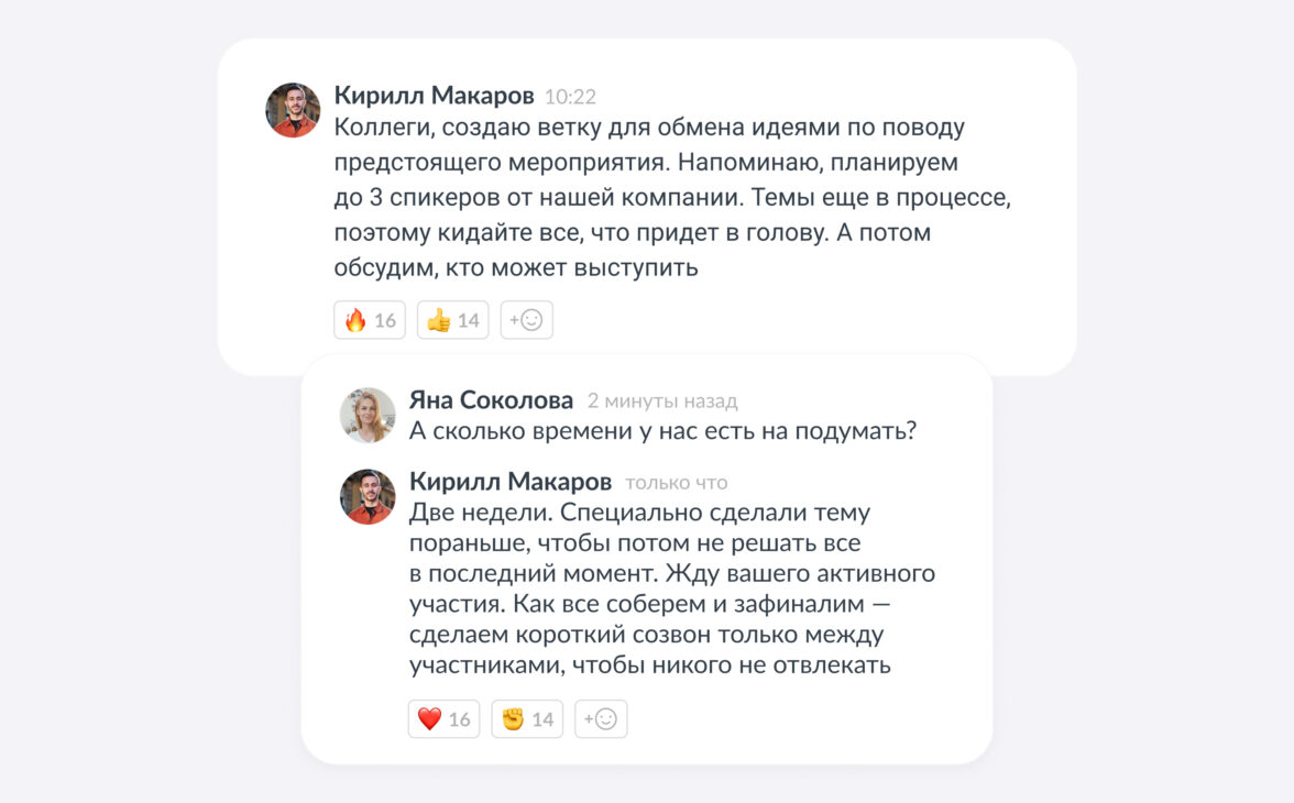 Переписки в корпоративных мессенджерах, где нет отвлекающих факторов.