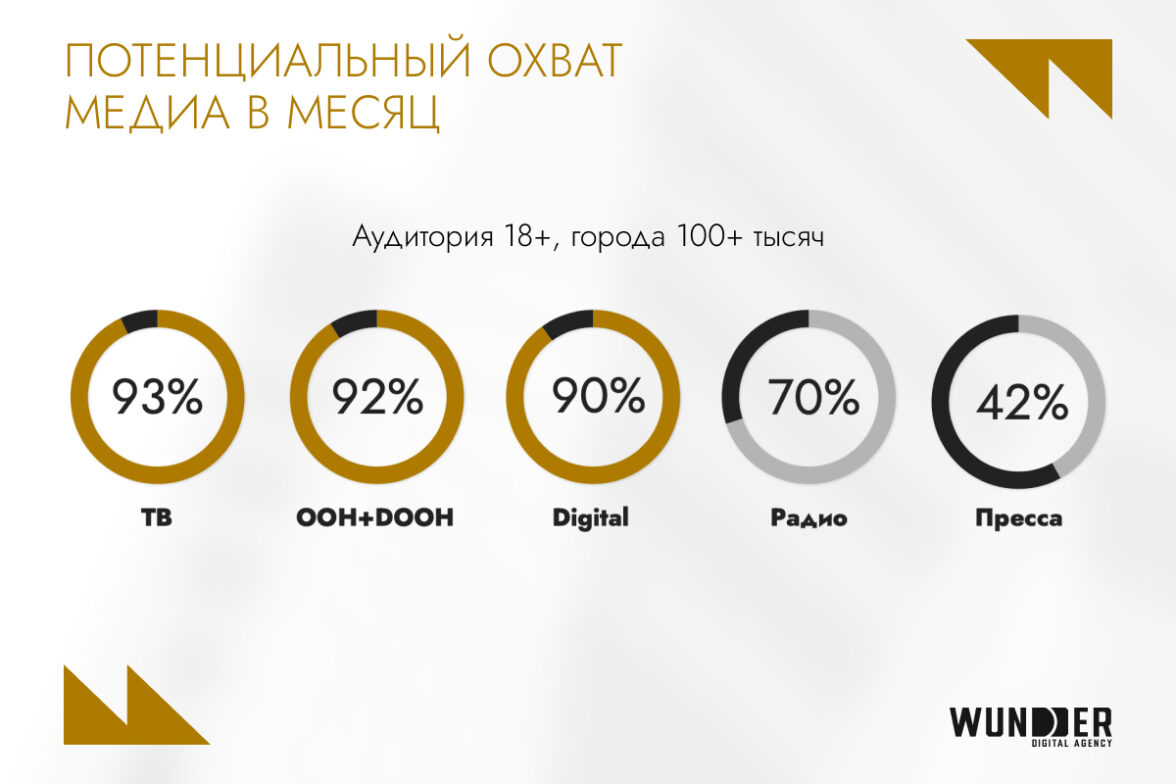 Учитывайте медиапотребление вашей аудитории при выборе площадок и форматов для продвижения. Преимущество следует отдавать цифровым каналам, которые активно используются в повседневной жизни.