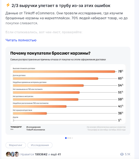 Зеркалить вообще весь контент, который я произвожу в своём телеграме, нет смысла. Посты набирают 100–200 просмотров, далеко не все темы заходят. У меня охваты дают тема ИИ, маркетинг, рекомендации книг, бизнес, менеджмент. Очень любит TenСhat различные исследования. Тут доходит до весьма ощутимых цифр — при 1000 подписчиков бывает 5–7 тысяч просмотров.