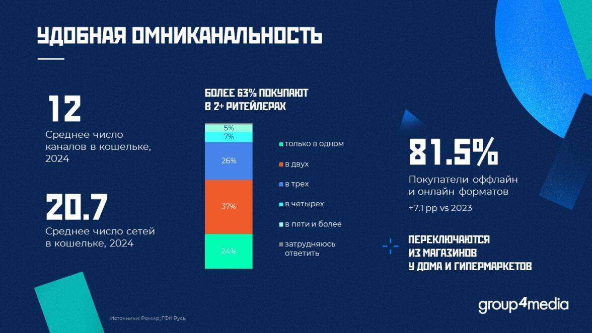Сами платформы становятся мультиформатными: потребитель переключается между онлайн и оффлайн — более 81% покупателей используют оба канала, а число ритейлеров в личном «кошельке» пользователя превышает 20***. Развивается геймификация, контент-коммерция, блогерские активации — все это делает e-commerce не просто каналом продаж, а средой вовлечения и лояльности.