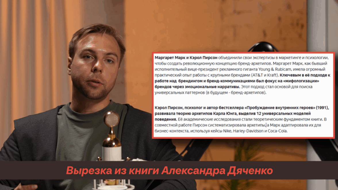 Дополнительно, Александр раскрывает подробности о написании своей книги про применение теории 12 бренд-архетипов на российском рекламном рынке.