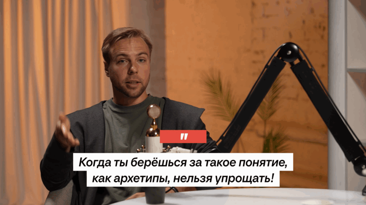 Архетипы — не только визуальные коды, но и семантика языка: как мы говорим, с каким интонированием, как окрашиваем речь, какой смысловой конструкцией обладаем, какие мысли высказываем. Комбо из этого всего и рождает архетип: очень плоско смотреть на вещи только с визуальным кодом.