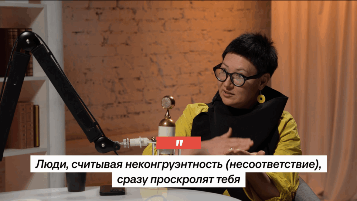 Сейчас дефицит внимания и времени: куда внимание — туда и энергия. А у людей очень мало энергии, и они используют ее очень дозированно. Люди, считывая неконгруэнтность (несоответствие), сразу тебя проскроллят. В мире открытого информационного поля выигрывают те, кто может открыто говорить, выдерживать напряжение и тратить энергию. Это сильное визуальное послание аудитории: я открыт, и готов идти на открытые вопросы.
