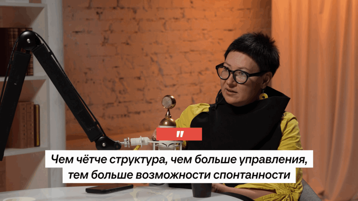 От других креаторов меня отличает то, что во мне есть Правитель: контроль, таблички, госконтракты. Я беру идею, описываю и кладу ее на KPI. Чем четче структура и больше управления, тем больше возможности спонтанности. Этот закон подсказал мне playback-театр. Творческие проекты хорошо монетизируются, если они хорошо материализованы и заземлены.