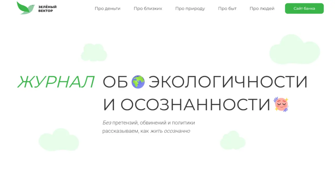 Для банка мы создали бренд-медиа «Зелёный вектор», чтобы повысить осведомлённость аудитории об ESG-повестке банка в качестве УТП.