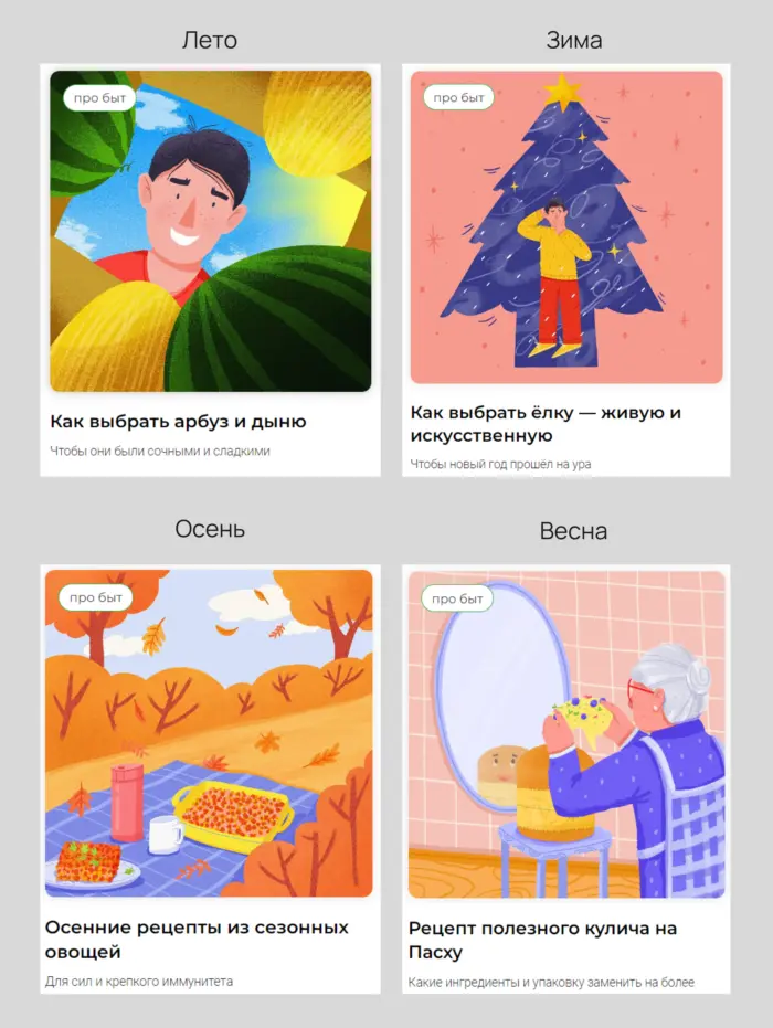 Примеры сезонных статей для рубрики «Про быт»