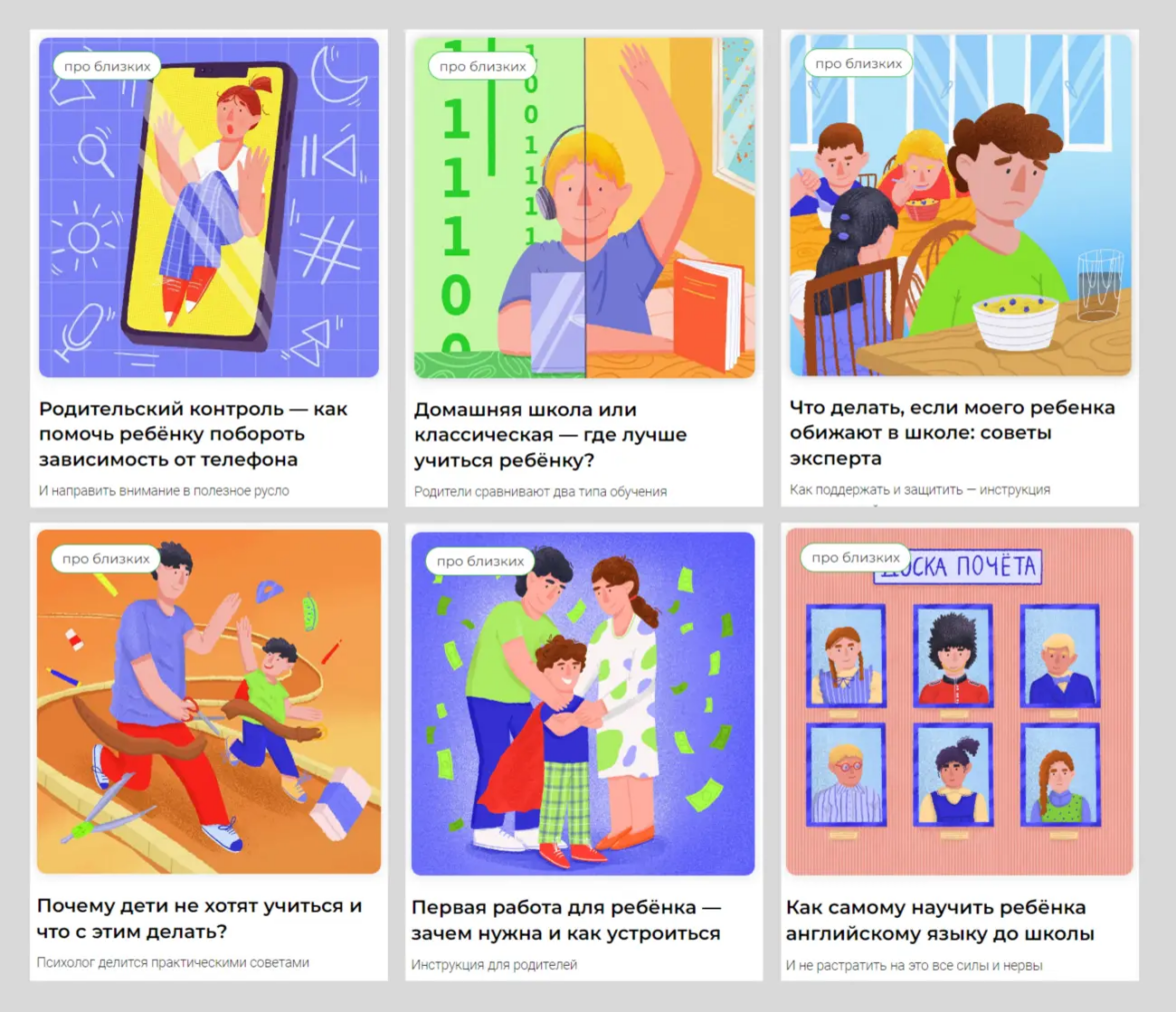 Примеры статей рубрики «Про близких» о детях: одну сферу можно заворачивать на несколько идей