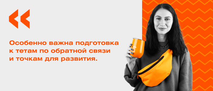 Тет не способ выяснения отношений. Это возможность дать обратную связь сотруднику, который идёт «не туда» или сосредотачивается на процессах, а не достижениях. Личная встреча поможет переориентировать члена команды на достижения и цель или даст сотруднику понять, что у него всё отлично, просто он немного запутался и не видит, насколько круто он уже прокачался как профессионал.