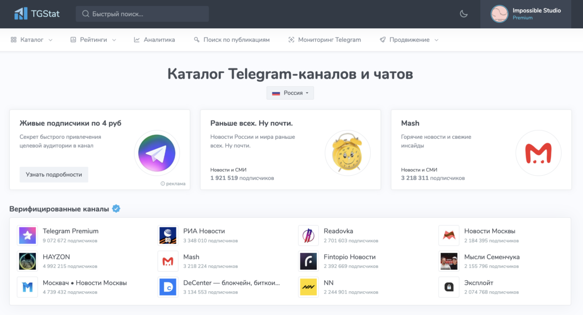 В «Бюро невозможного» анализируем всё до запуска — через Tgstat и Telemetr.