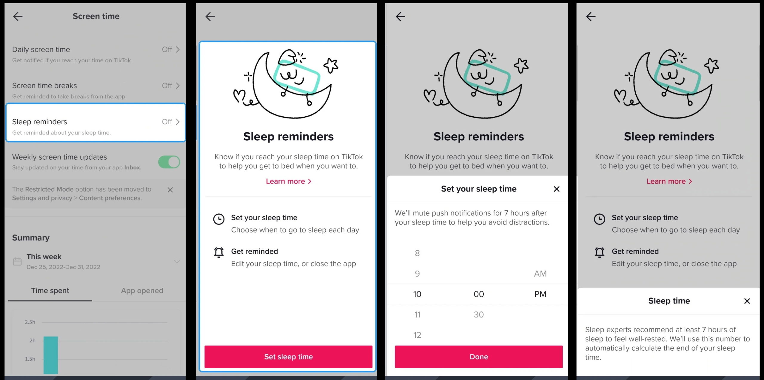 Функция напоминаний о сне в TikTok предназначена для того, чтобы помочь пользователям лучше выспаться ночью, напоминая им убрать телефоны и успокоиться перед сном. Пока она тестируется в Канаде. В дальнейшем соцсеть планируется развернуть ее в других регионах.