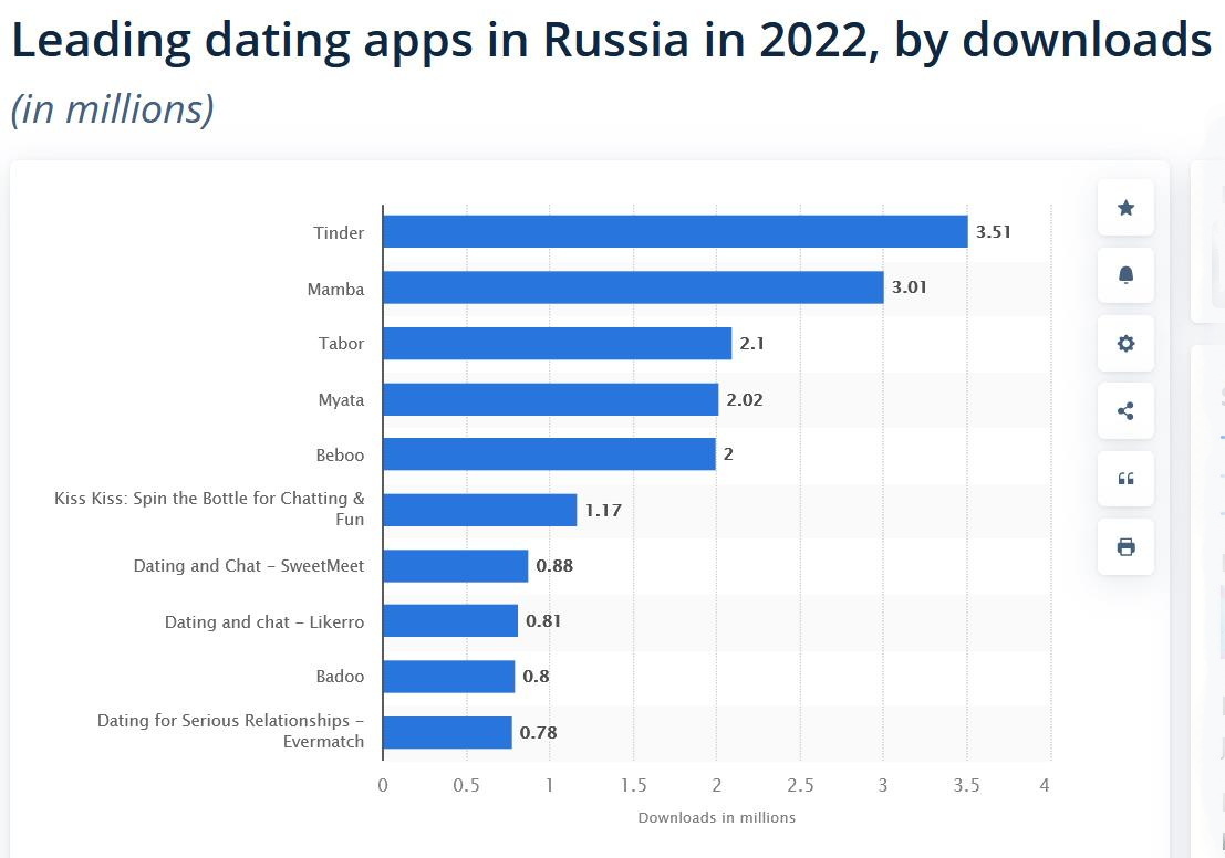 В выигрыше от ухода западных конкурентов оказались российские сервисы. Так, по данным «Коммерсанта», в 2022 году платформа «Мамба» увеличила свою аудиторию на 20%, «Теамо» — на 30%, а «VK Знакомства» — на 73%.