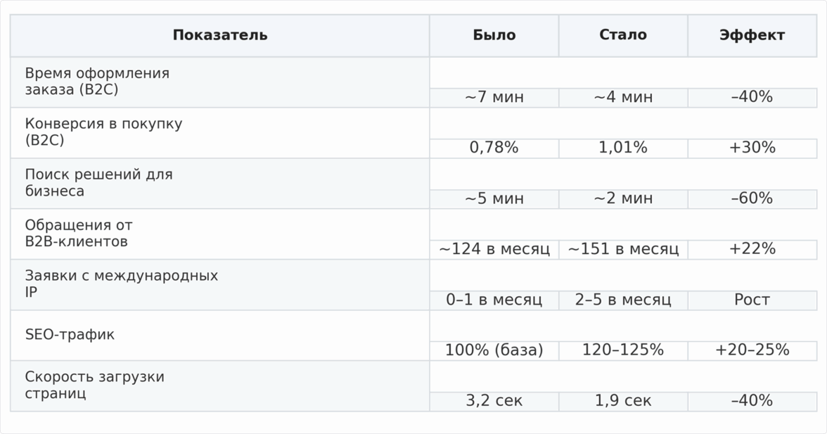 Эффект: покупатели оформляют заказы быстрее, возвращаются чаще.
