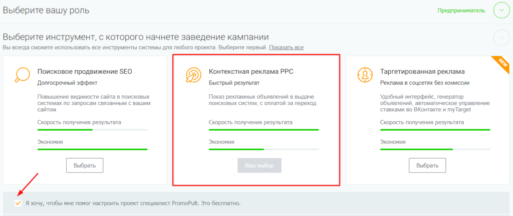 Нет времени настраивать рекламу самостоятельно — пополните баланс аккаунта на сумму от 3000 рублей, запросите помощь специалиста PromoPult на этапе заведения проекта в систему, и через 3 рабочих дня получите готовую к запуску кампанию.