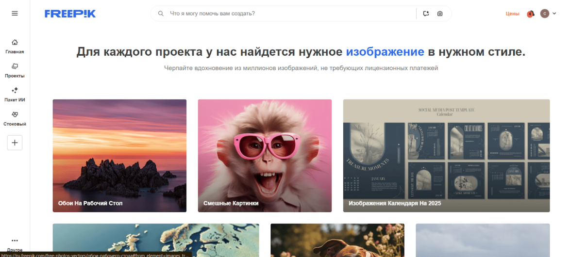 На стоке есть как готовые материалы, так и возможности для быстрой генерации нового контента. Большая часть ресурсов на Freepik доступна бесплатно при соблюдении условий лицензии: обычно требуется указание авторства.