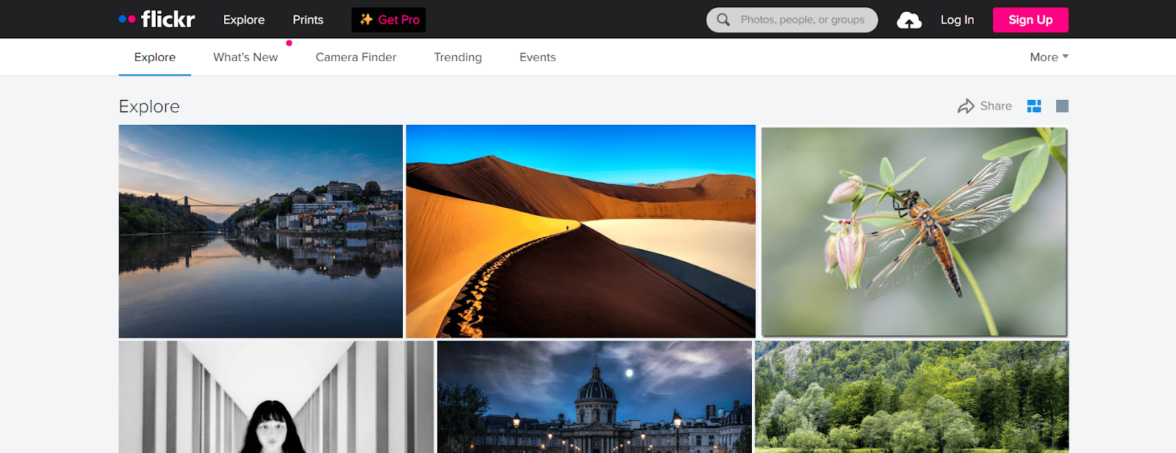 Flickr служит одновременно бесплатным фотостоком и социальной сетью для фотографов. Поэтому на сайте собрано много фотоконтента — от художественных снимков до документальных кадров. Есть возможность искать по категориям, тегам, группам и лицензиям. Работают расширенные фильтры для поиска контента с лицензией Creative Commons — эти изображения можно использовать бесплатно с указанием авторства.