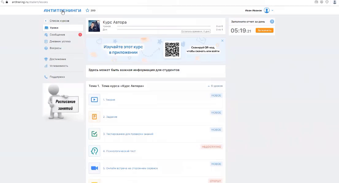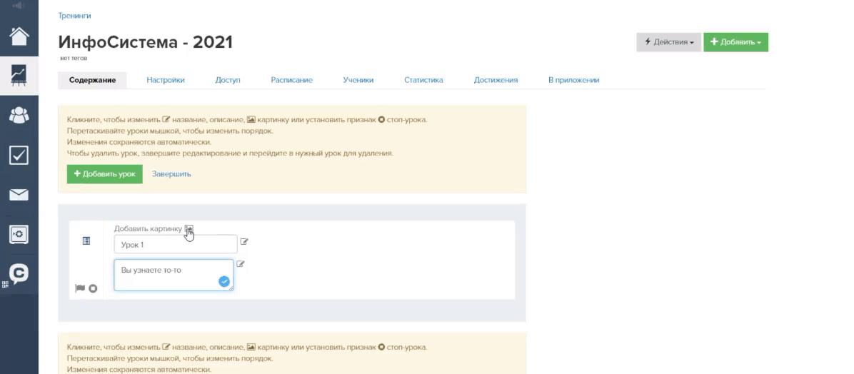 ➖ Недостатки: простой интерфейс, но не всегда интуитивно понятный. Нельзя посмотреть, насколько глубоко слушатели изучили отдельные материалы в уроках.