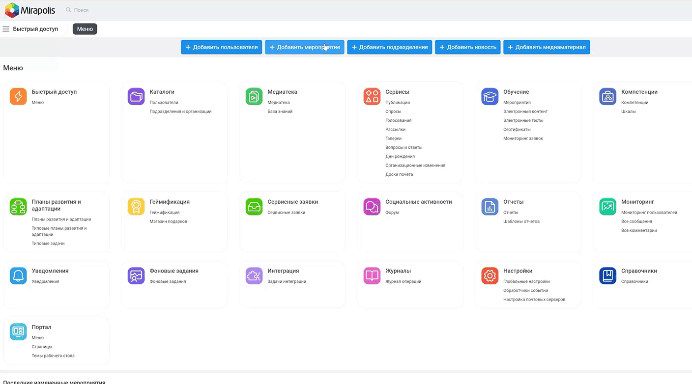 ➖ Недостатки: не подходит для обучения сотрудников небольших компаний со штатом до 100 человек. Нет коробочного решения, каждый заказ — индивидуальная разработка под запросы клиента. У платформы сложный интерфейс, скорее всего, потребуется обучение HR-специалистов работе с Mirapolis.
