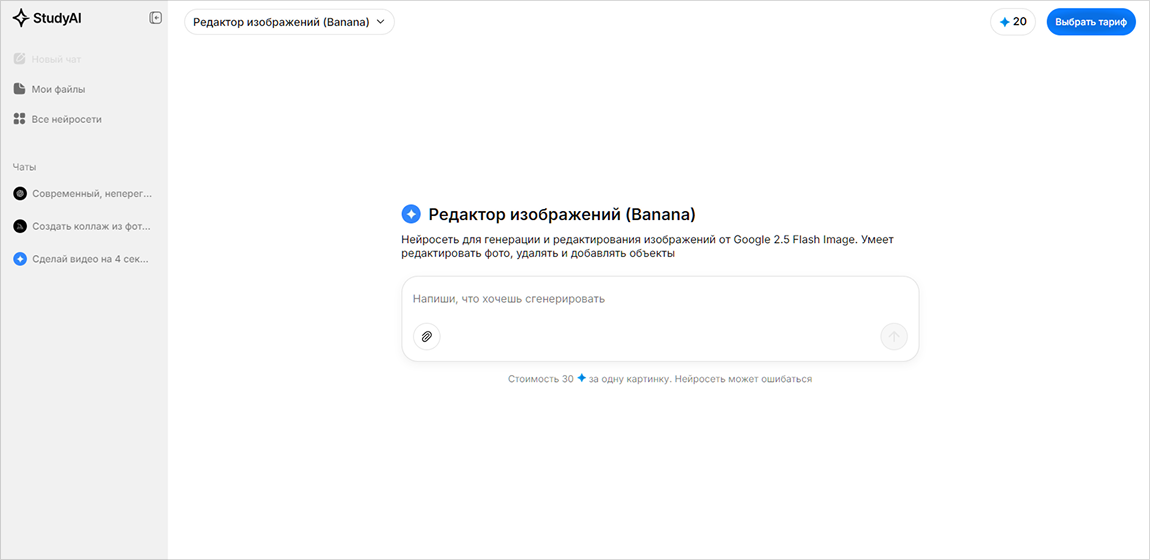 Стоимость генерации варьируется в зависимости от модели.