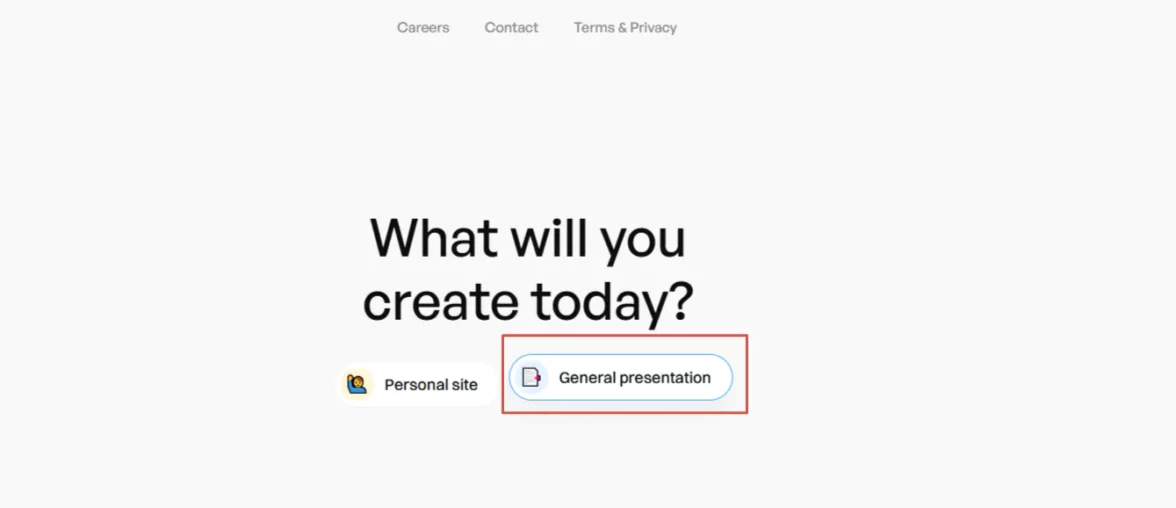 Для создания презентации на главной странице кликните на кнопку General presentation, а далее введите промпт