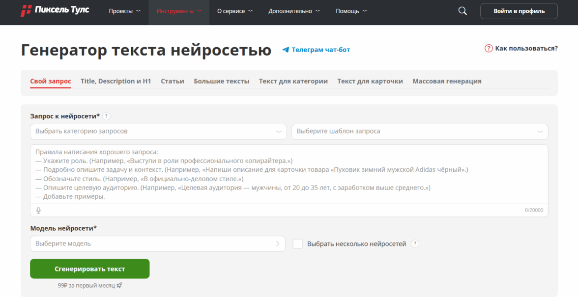 Тип текста. Для официальных документов лучше использовать Claude или GPT-4 через агрегаторы (например, GPTunneL). Для творческих постов подойдут AiWriteArt или MashaGPT.