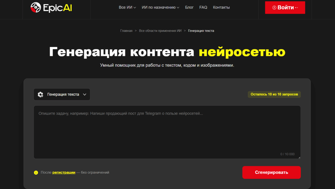 Epic AI — сервис для профессиональной работы с генеративным контентом.