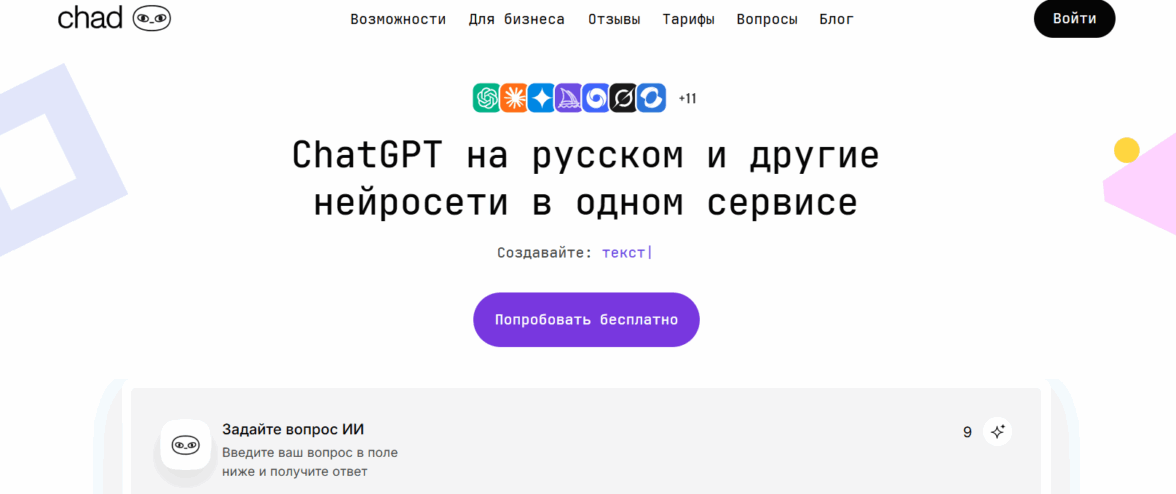 Стоимость: бесплатно (модель 4o-mini), платная подписка Plus для доступа к полным мощностям от 199 рублей.