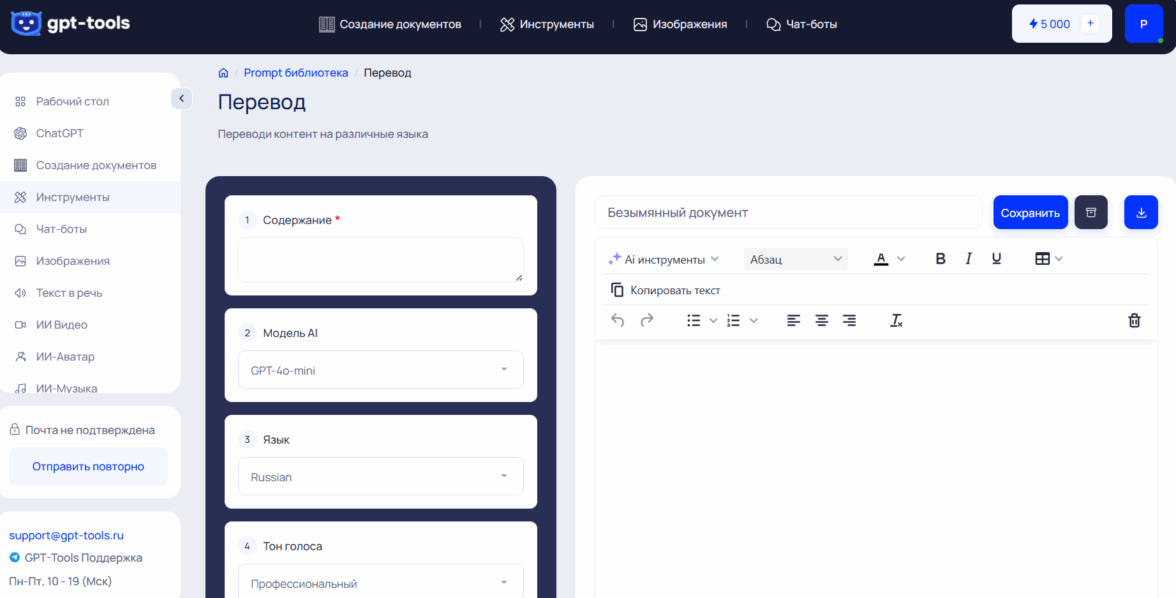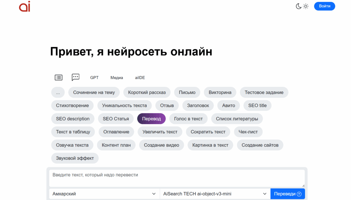 Проект, максимально адаптированный под специфику русского языка. Когда требуется перевод текста с помощью ИИ, учитывающий культурный контекст СНГ, выбирайте этот вариант. Поскольку модели ruGPT обучались именно на русском языке, они не «спотыкаются» на падежах и склонениях, чем часто грешат западные аналоги. Всё работает стабильно, а регистрация проходит быстро и без лишних танцев с бубном.