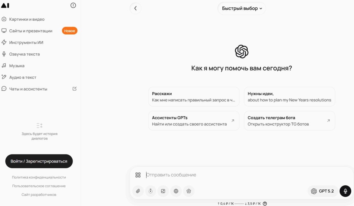 Формат работы: текстовый чат, генерация идей, обработка длинных статей.