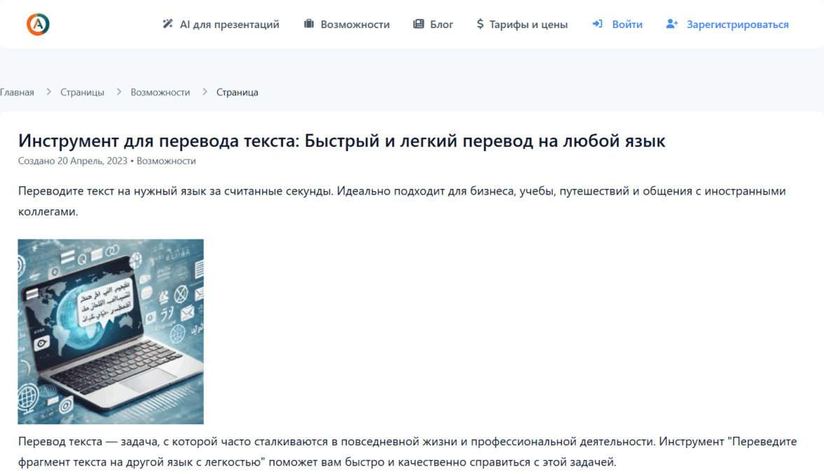 Сервис для тех, кто привык искать информацию на глобальном уровне. Этот бесплатный ИИ для перевода текста помогает ориентироваться в зарубежном сегменте интернета. Находите статьи на английском, китайском или немецком языках, и система мгновенно выдаст их перевод или краткое содержание. AISearch экономит время на поиске и первичной обработке данных.