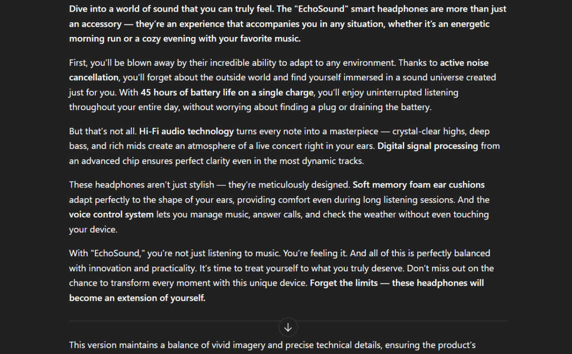 Результат напрямую зависит от точности вводных данных. Описывайте сферу деятельности, целевую аудиторию и желаемый стиль повествования. Указывайте конкретную роль для получения профессиональных формулировок. Краткость в запросах приводит к получению усредненных вариантов и потере стилистических нюансов.