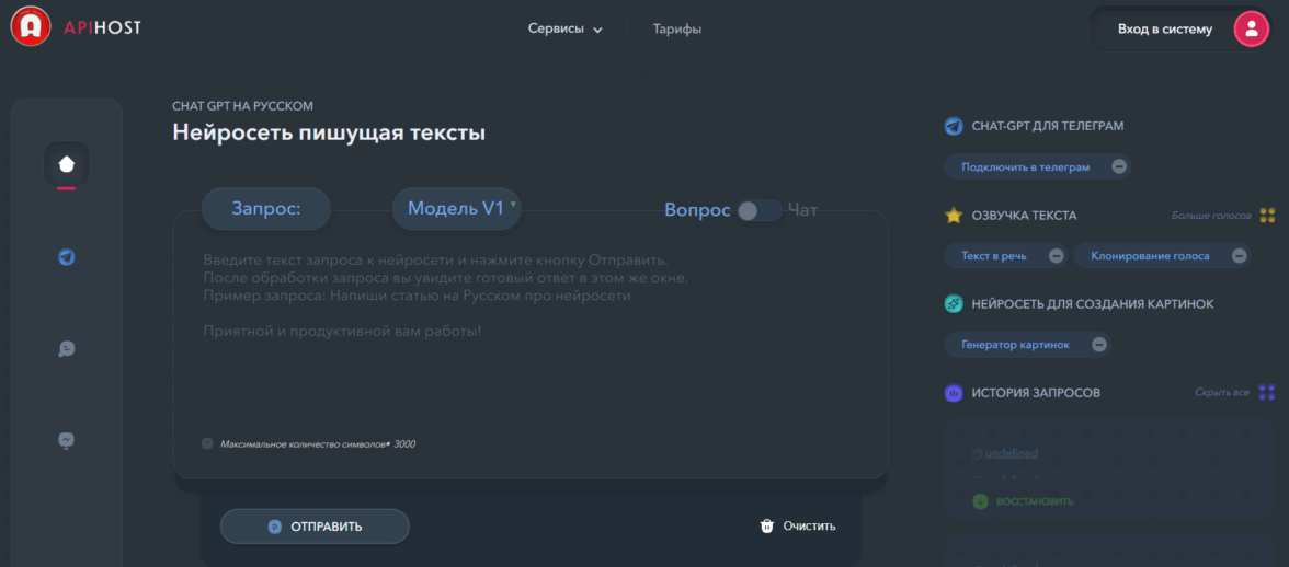 Apihost — сервис с интеграцией различных нейросетевых функций.