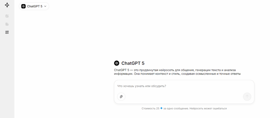 Самая продвинутая версия нейросети OpenAI с улучшенным мышлением, скоростью и русскоязычной адаптацией. Модель решает сложные задачи, генерирует академические тексты и фото, пишет код и помогает оптимизировать рабочие задачи. Поддерживает расширенный контекст до 100 сообщений, анализ изображений чертежей и мультимодальные запросы. Подходит для студентов, копирайтеров и разработчиков, нуждающихся в точных ответах без ошибок старых моделей.