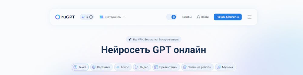 8. ruGPT — русскоязычная платформа для работы с текстом, озвучкой, презентациями, изображениями и видео.