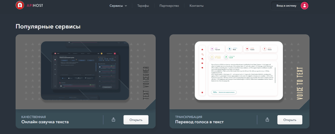 6. ApiHost — сервис для написания текста и генерации озвучки, перевода информации и фото.​