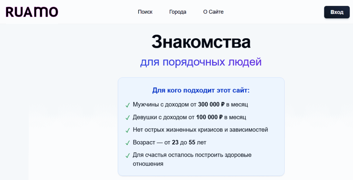 Ruamo — Современный вариант для интим встреч ночь напролет, с удобным поиском рядом и объявлениями.