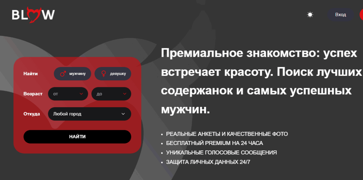 Blow — Динамичный ресурс для секс знакомств с объявлениями от активных пользователей, подойдет для спонтанных планов.