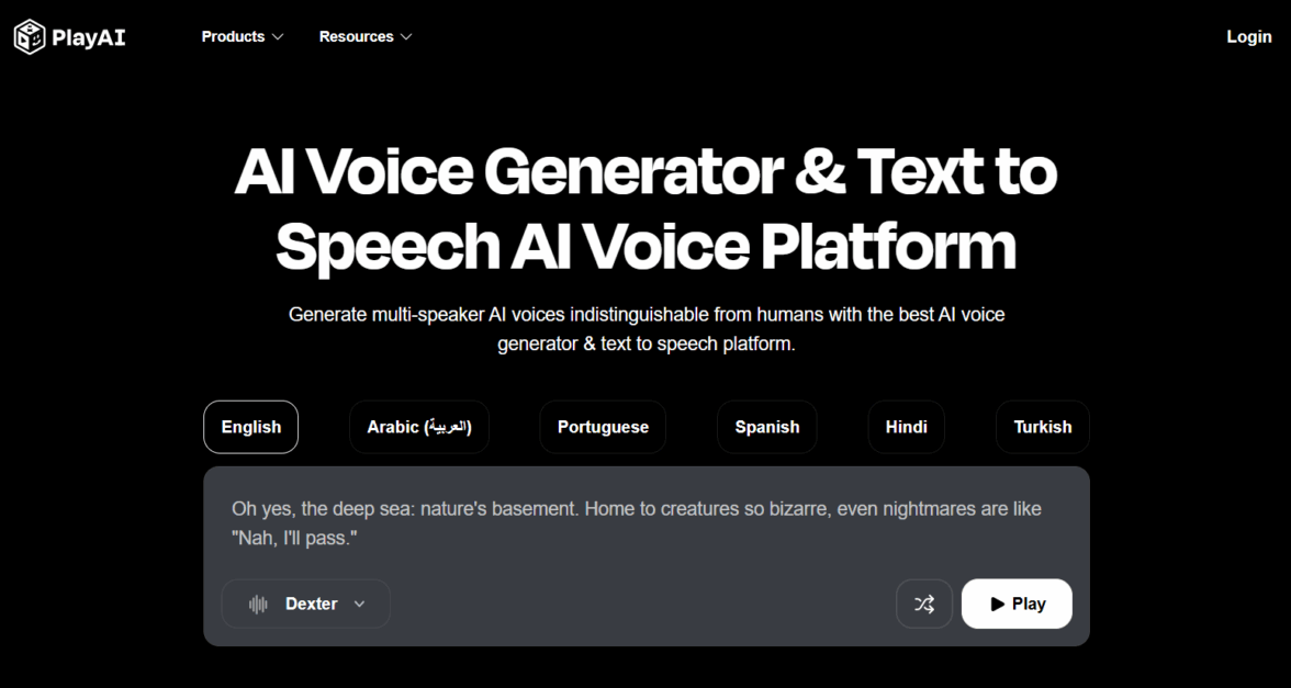 PlayAI — предлагает профессиональное качество дикторских голосов и удобный редактор для точной настройки звучания.