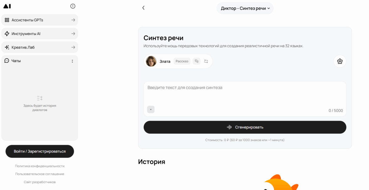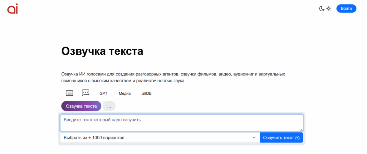 Инструмент «Текст в голос» встроен в крупный агрегатор нейросетей: текст, картинки, презентации, музыка и озвучка в одном месте
