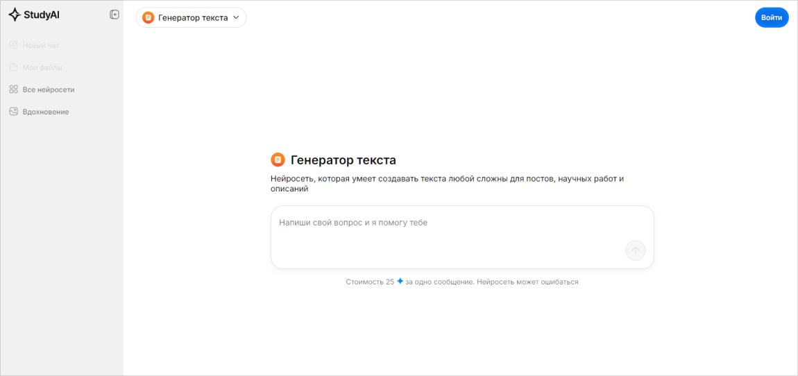 Максимальная простота интерфейса без ненужных опций для быстрой генерации.