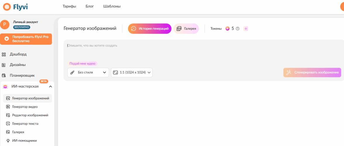 Не просто генератор, а полноценный онлайн-редактор с ИИ-мастерской внутри. Здесь в одном рабочем пространстве соседствуют нейросеть для создания картинок людей и инструменты для улучшения качества фото, замены лица и даже генерации видео. Тем, кому важно не просто получить изображение, а сразу доработать его до эталонного визуала — для поста, баннера или сторис — Flyvi экономит массу времени.