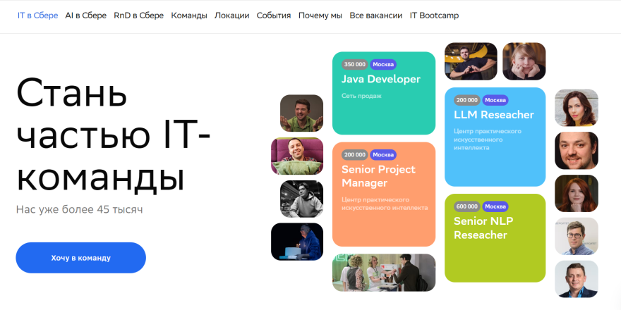 Технологический холдинг с экосистемой сервисов и облачной платформой. Активно развивает AI. Предлагает карьерный рост через «Академию Сбера».